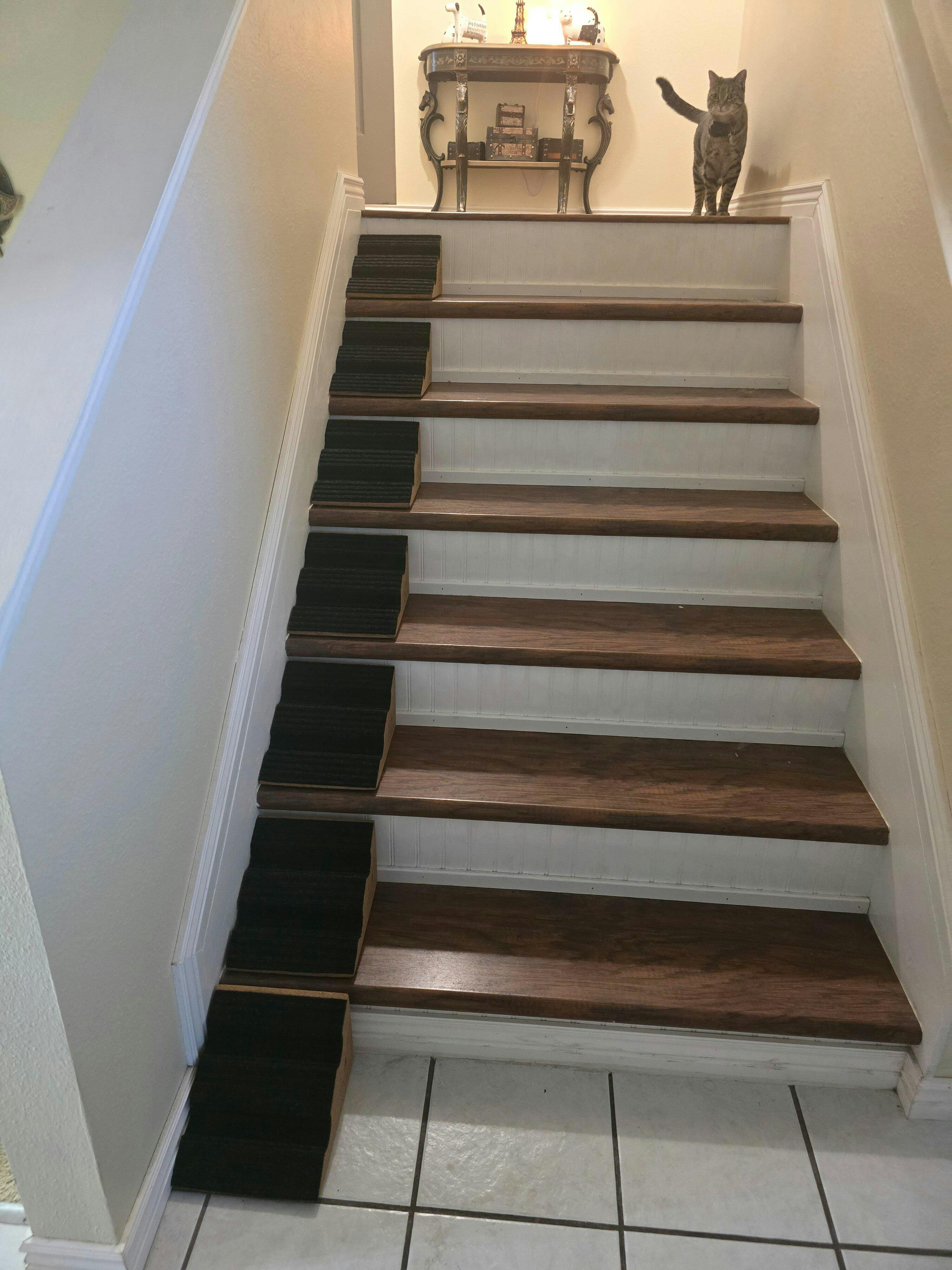 The most important thing to know here is that the product is very well made and they look really nice on the steps. More important, the communication with the owner is outstanding and he’s a wonderful guy. He provided some helpful information to help get my dog acclimated to the steps.